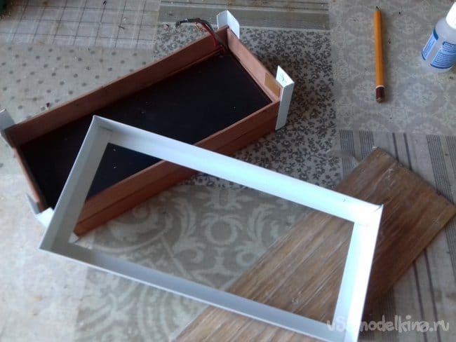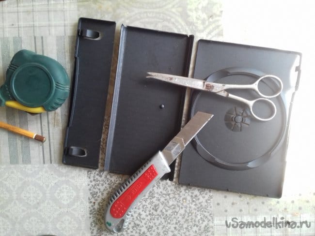 Теперь займусь оболочкой проекта, коробочка от DVD диска идеально подошла по габаритам. Согласно размера панели, прорисовал и раскроил пластик. К существующим бортикам сделал четвертый и вложил панель.