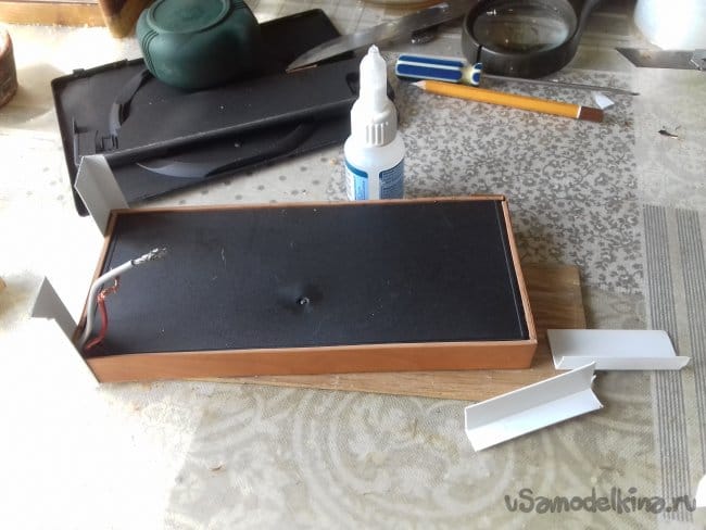 Далее нарастил стенки, из того же пластика, для размещения внутри них аккумуляторов, а из уголка ПВХ каркас крышки.
