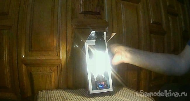 Закрутил лампу и она включилась. Освещение не плохое, светит ярко, попробую выставить на несколько солнечных дней под прямые лучи солнца, или подключу панель большей мощности. Или зарядкой подтяну аккумуляторы, вот тогда и попробую, на какое время их хватит.