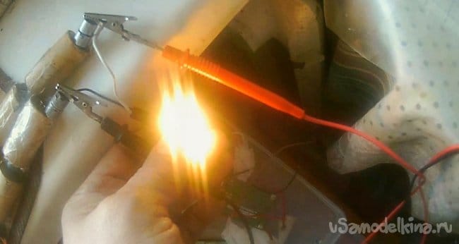 Напряжение просело, светодиоды продолжают светиться, хотя не так ярко. Еще немного и потухнут. Эксперимент длился меньше пятнадцати минут.