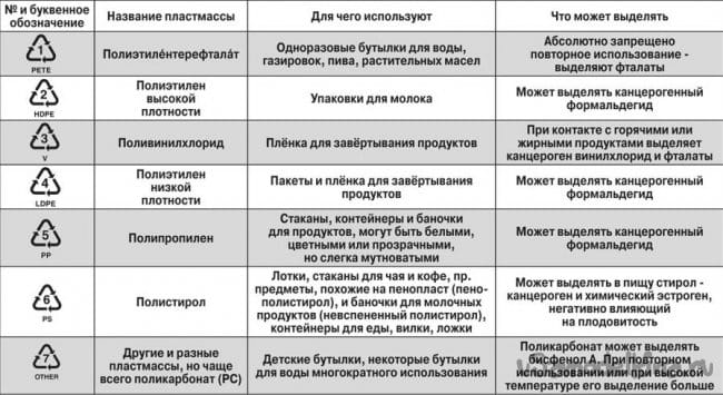 Если имеются ненужные пластиковые вещи, то надо искать маркировку: