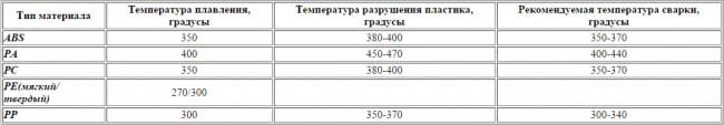 Хоть в таблице и указана температура 300°C, но я всё варил при температурах от 185 до 215°C.