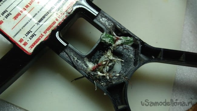 Обрезать и восстановить соединение не проблема, а что со второй катушкой? И тут меня ждал неприятный сюрприз. Вторая катушка вообще не звонилась. Провод до ввода целый, а катушка не звонится… Ну что же, не хочется но придется разбирать катушку. Снимаю защитный чехол. Катушка залита чем-то вроде эпоксидной смолы.