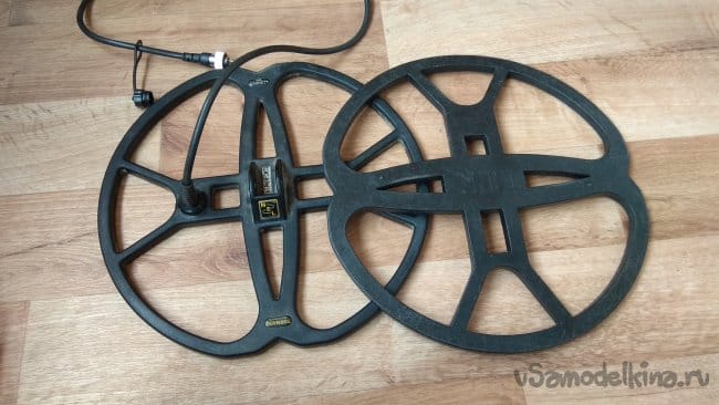 Раньше с таким ремонтом не сталкивался, но примерное представление о катушке имею, так как сам хотел собрать металлоискатель, читал информацию по теме. Устройство катушки металлоискателя не сложное, внутри находятся две катушки: трансмиттера и ресивера. Взял тестер, поставил на прозвонку, нашел выводы одной из двух катушек. При шевелении провода возле корпуса катушки пропадает контакт, хоть там и стоит гибкий кабельный ввод защищающий кабель от перелома. Не стал прозванивать вторую катушку. Решил обрезать и сдвинуть кабельный ввод, чтобы добраться до места перелома. Зачистил изоляцию и обнаружил два экранированных провода, у провода с плохим контактом оказался перетерт весь экран, проводки окислились и переломались, видно в кабель как-то попадала вода.