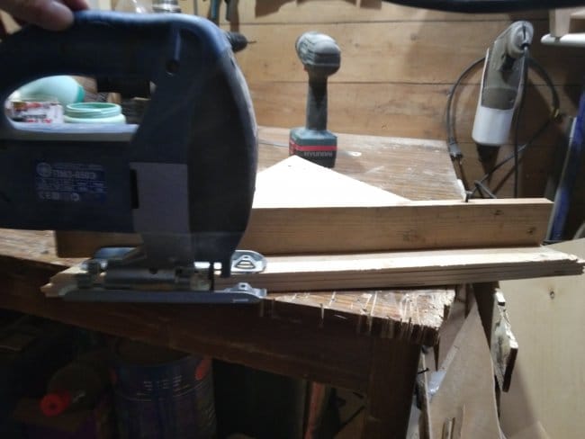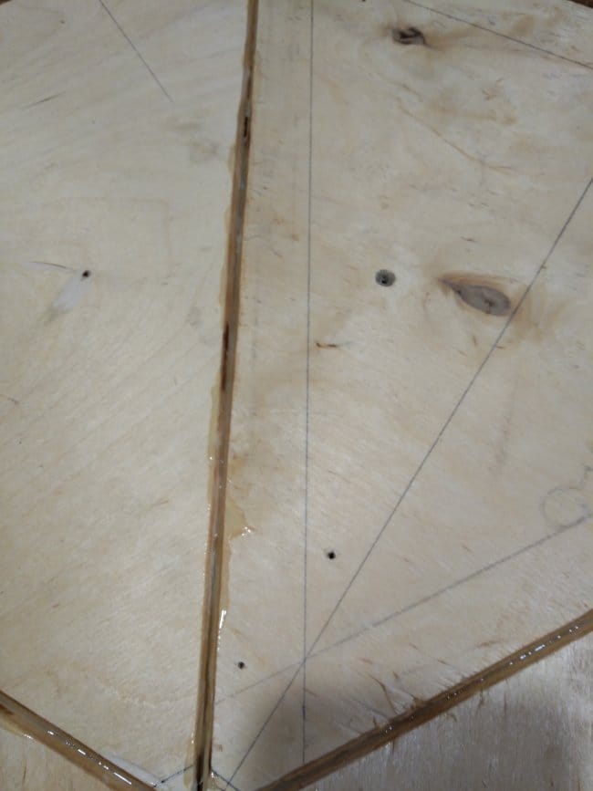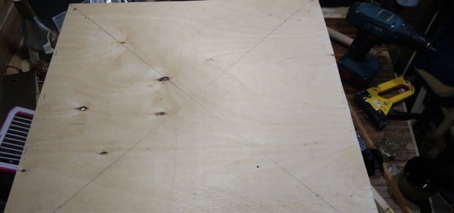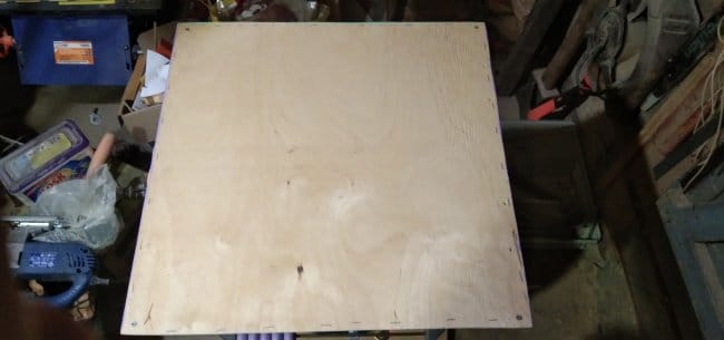Для начала я разметил на фанере размер грани будущего бизиборда. Затем скрепил между собой все 4 заготовки для граней саморезами. Т.к. выпиливал лобзиком, а с его помощью сделать ровный срез достаточно сложно, то пришлось делать направляющую планку и закрепив ее по краю пропила уже пилить. Так рез получается гораздо ровнее.