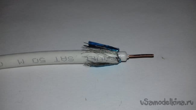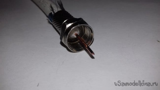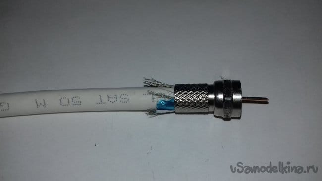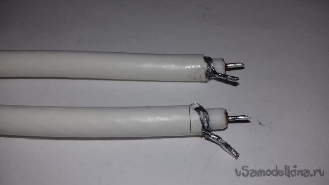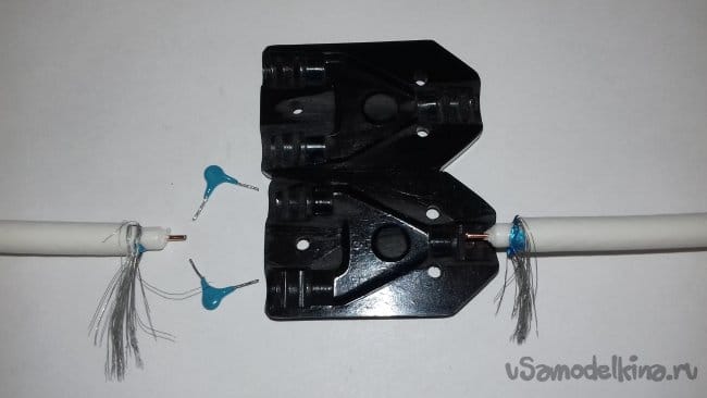 ШАГ 3. Подготовка кабеля. Разрезал кабель на 2 равных по длине отрезка. Зачистил концы и накрутил разъёмы.