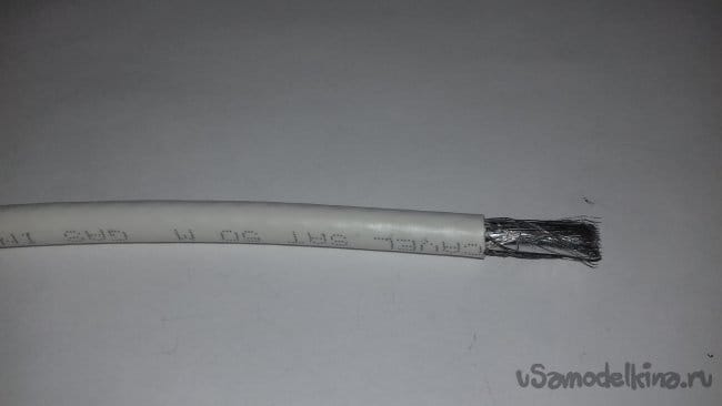 Другие концы зачистил и залудил. Должен заметить, что этот процесс имеет свои особенности. Центральная жила лудится без проблем, а вот оплётка таких кабелей в большинстве случаев с канифолью не паяется. Поэтому пришлось использовать активный флюс. Вот такой
