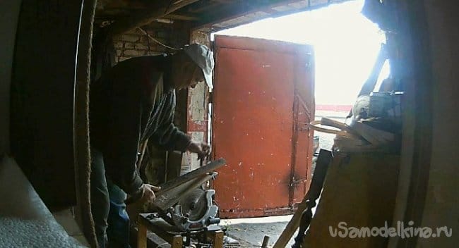 Второй, надо взять ручную циркулярную пилу, развернув ее режущей частью вверх, как сделал я. Или, если есть, применить стационарный станок для продольного и поперечного пиления.