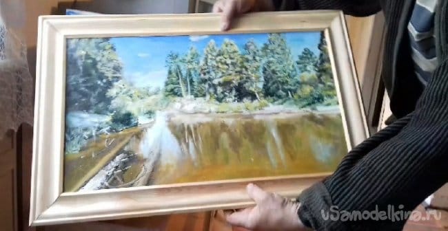 Просто надо посетить строительный магазин и в соответствующем отделе выбрать приглянувшийся профиль в виде полового плинтуса или багета. Ширина выбирается пропорционально размера фотографии или полотна.