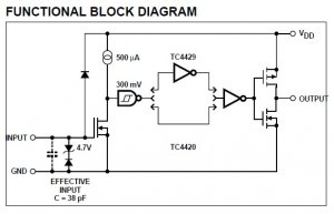 IC2 драйвер нижнего плеча полевого транзистора ТС4420, можно и более мощный ТС4422, тогда по даташиту он сможет потянуть даже IRF3205.
