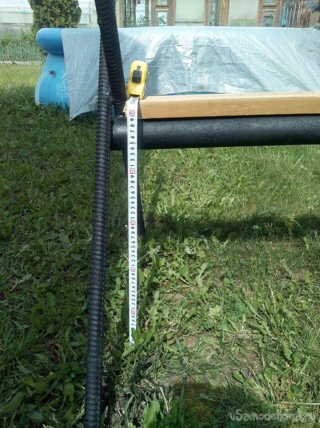 Ставим конструкцию горизонтально и «прикусываем» к трубе вторую заготовку. Выравниваем вертикали и диагонали.