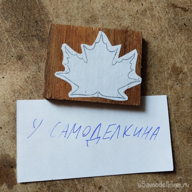 Для начала нужно выбрать плашку дерева с выразительной текстурой (с чем у тика все сложно) и наклеить на нее предварительно распечатанный и вырезанный трафарет.