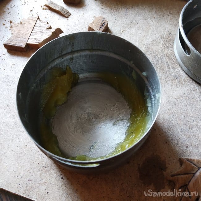 Теперь финишная шлифовка последней наждачной губкой и покрытие восковой мастикой для дерева.