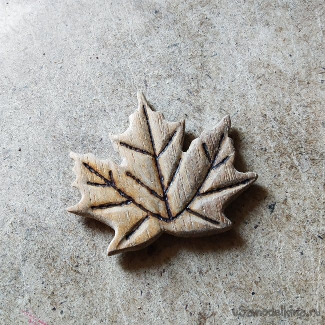 После обработки первой губкой я решил прожечь жилы листа, чтобы их лучше было видно. Выжигал я тем же советским выжигателем.