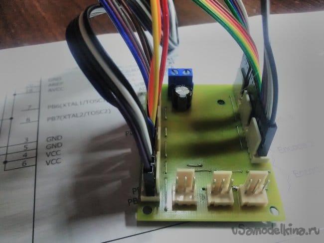 Печатная плата с тремя модулями управления (начало сборки):