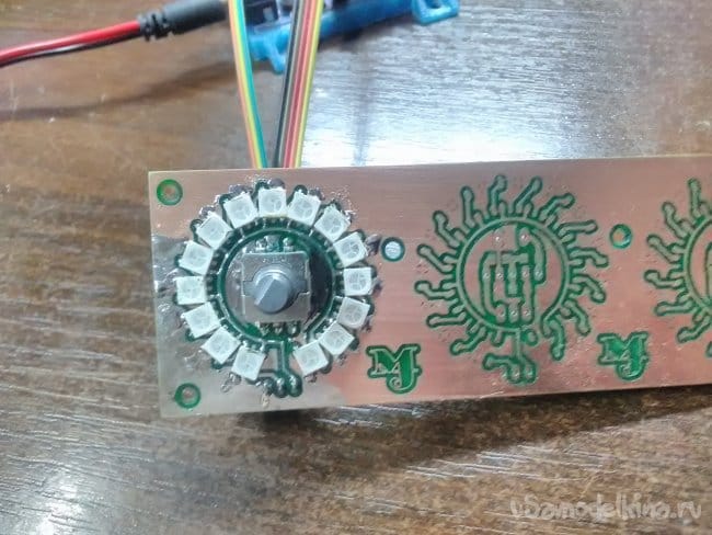 * Вращая энкодер влево/вправо изменяем соответствующий уровень параметра для каждого модуля и пропорционально изменяется свечение RGB диодов.