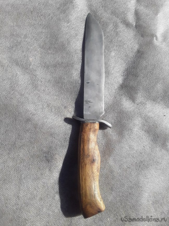 В общем то и все полирую рукоять на тканевом круге и нож из стали 60г готов. После стабилизации карагач проявил свой рисунок мне очень понравилось работать с карагачем в наших краях его много так что поеду как-нибудь напилю себе заготовок побольше в сети пишут что с годами это дерево становится очень крепким так что заготовлю на годы вперед пусть сохнет. Сам нож наточил и проверил рез на канате 20мм количество реза получилось 52. Крепость получилась отменная в общем работай доволен при изготовлении снял немного видео, пожалуйста, поддержите моё начинающие детище пока подписчиков немного, но думаю вырастим. Правда иногда обидно что кто-то пишет плохие комментарии лежа на диване делая вид что сами мастера на все руки. Я понимаю что где-то я рукапоп, но я стараюсь расти и исправляться. Так что если кому-то что-то не нравится, то завидуйте молча моей насыщенной жизни. Так же хотел бы услышать ваш совет на тему будущих видео ценю мнение всех спасибо большое вам за то что читаете мою статью всем здоровье и благополучия ну и до новых Самоделок друзья.