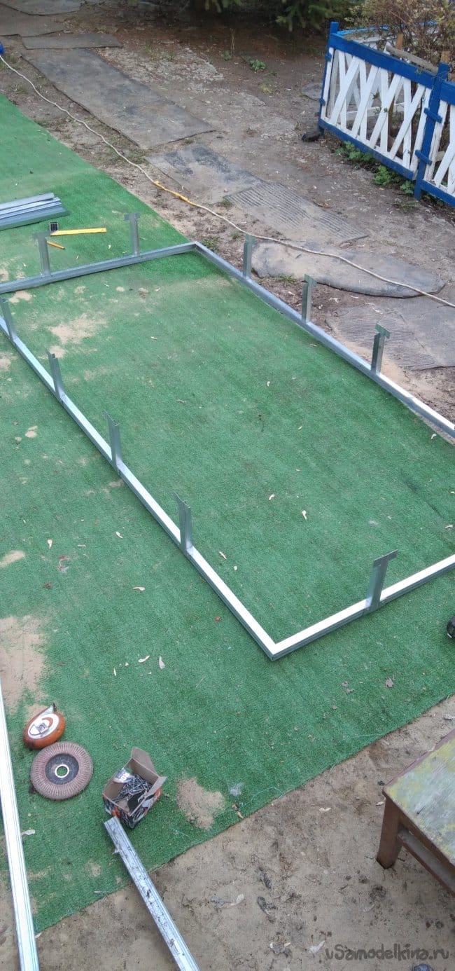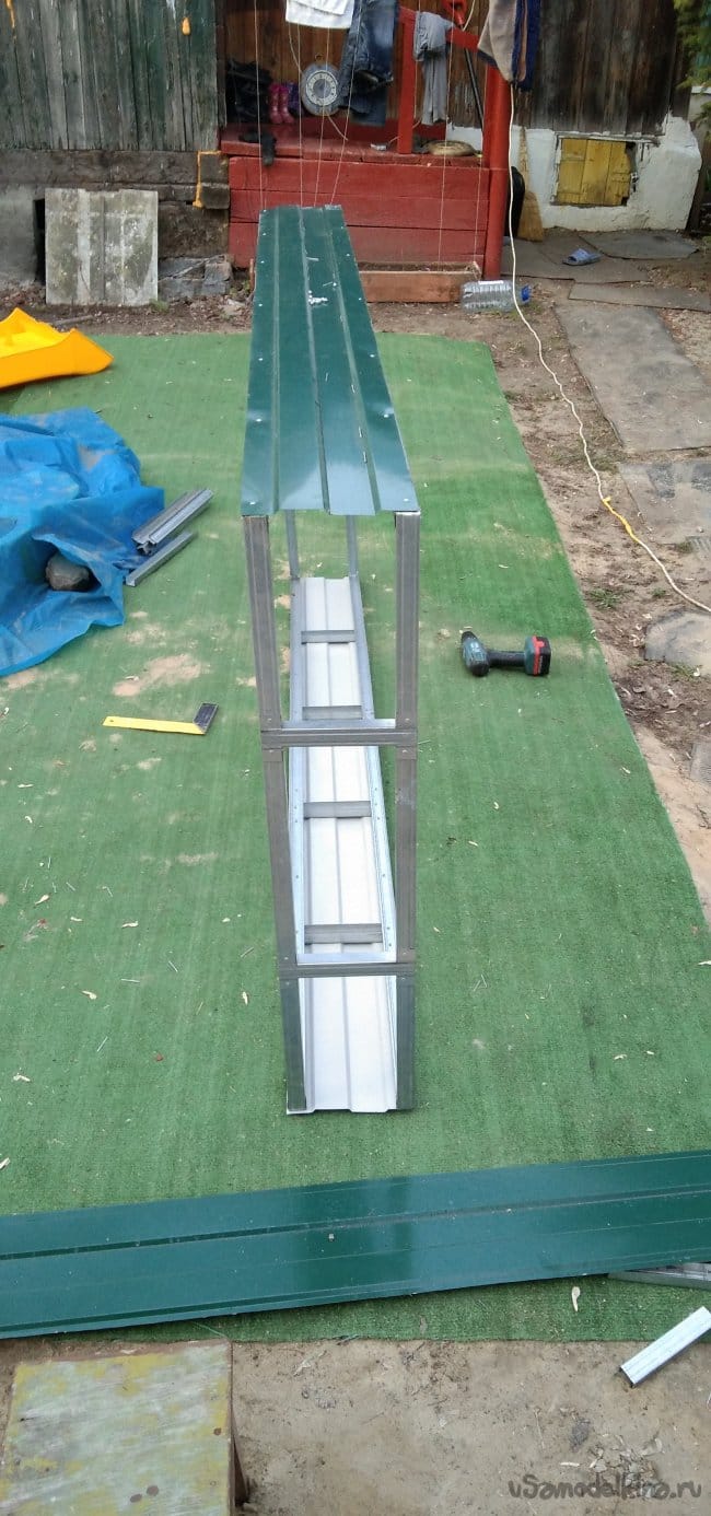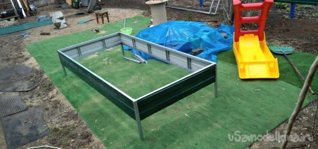 Материалом для грядки стал направляющий профиль для гипсокартона и оцинкованный профнастил для забора.