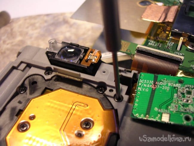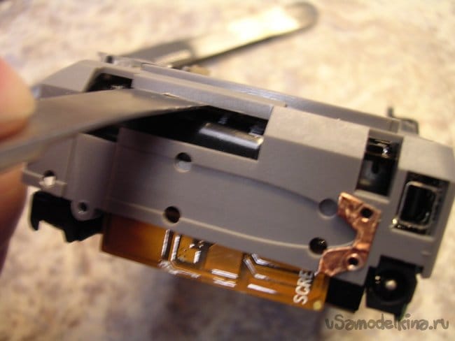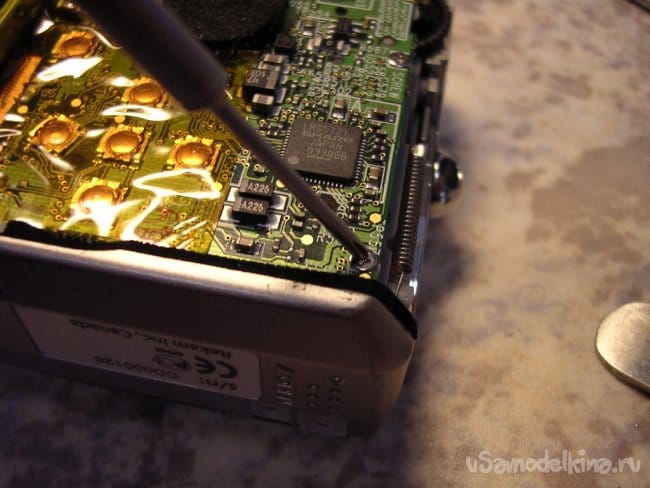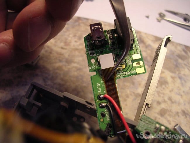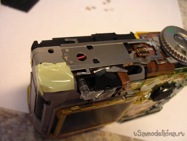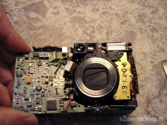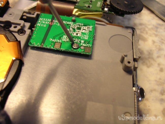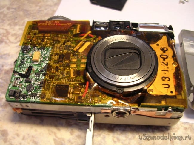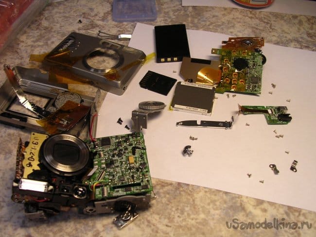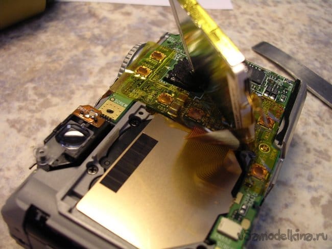 Возникли проблемы у старенького фотоаппарата с разъемом. Вроде простой ремонт, но чтобы извлечь плату нужно практически полностью разобрать агрегат.