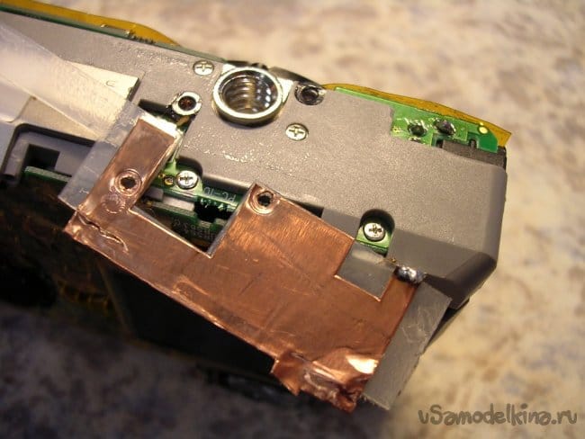 Есть в конструкции и заземление. Отпаиваю фольгу.