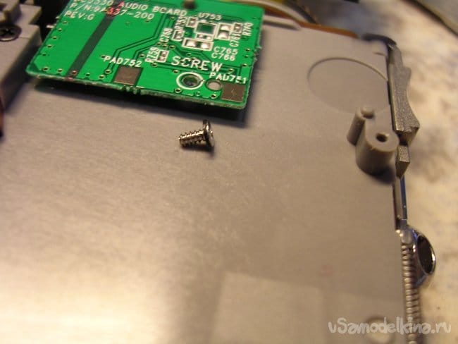 Еще одно шасси. Осторожно ворочаю корпус с висящим дисплеем. Еще она блестящая планочка со скобкой крепления ремешка.