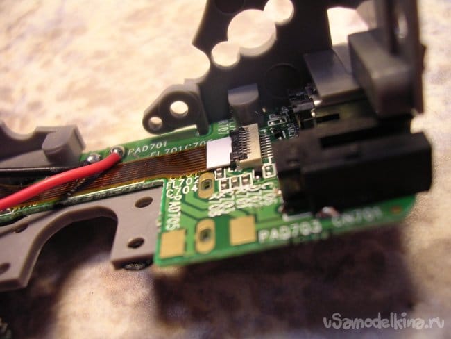 Есть еще один хитрый шлейфик, упрятанный внутрь конструкции. Здесь ребята конструкторы малость перестарались.