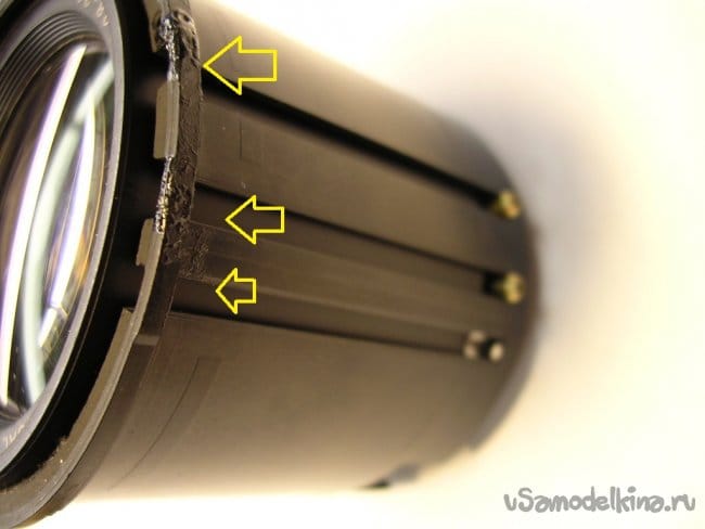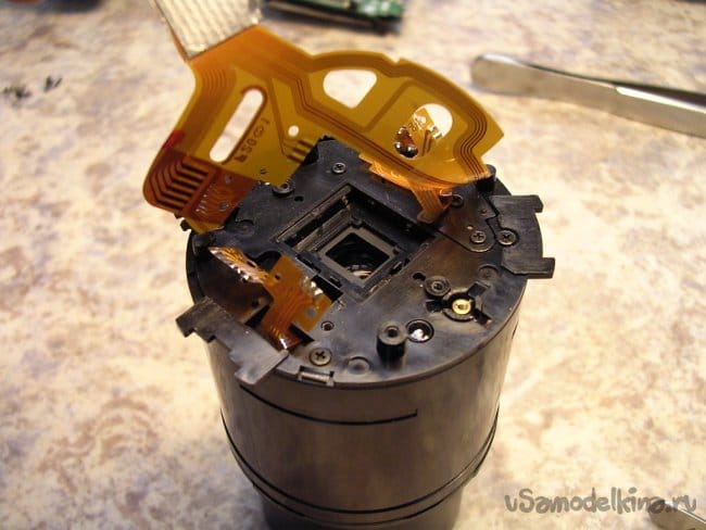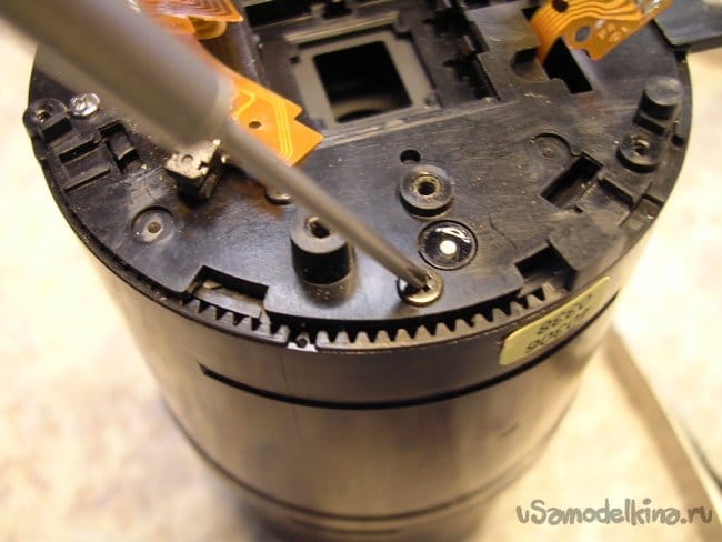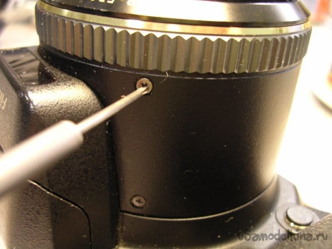 Раскручиваю болтики крепления объектива к остаткам корпуса.
