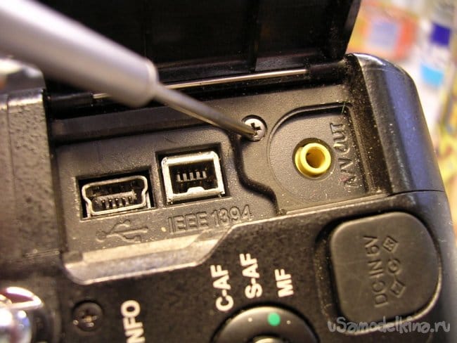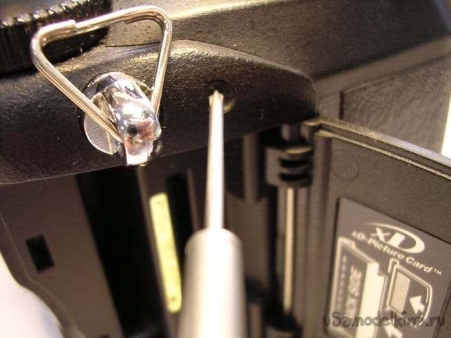 Нужно снять объектив и всю периферию около. Это блок батарейного отсека, снимаю крышку.