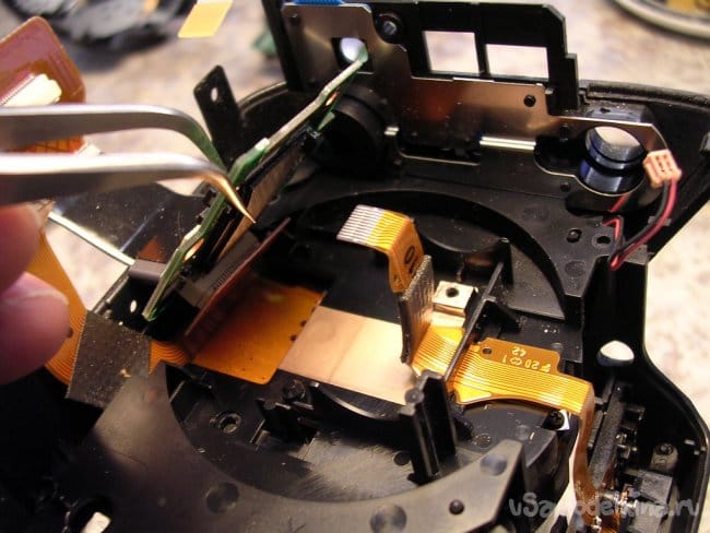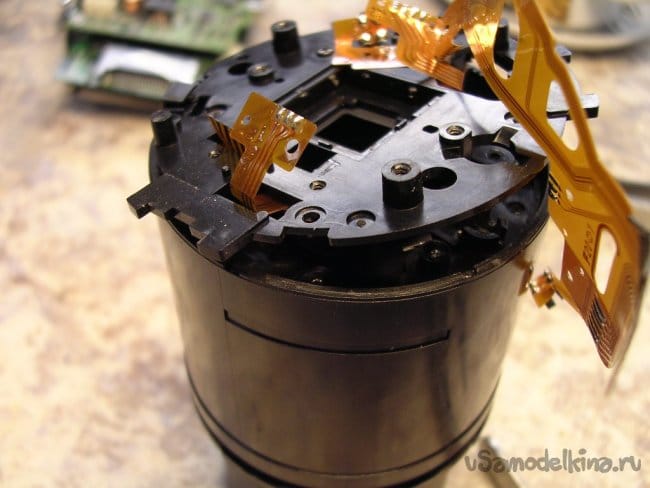 Снял её родимую, откладываю в спец коробочку во избежание. Сейчас нужно распаять шлейфы управления идущие к блоку выдвижения объектива, к затвору, апертуры (диафрагме по-русски).