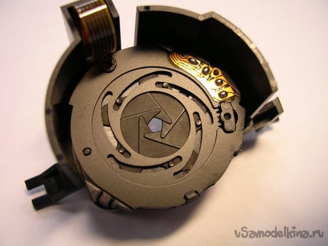 После снятия верхних "бочек" извлекаю блок затвора и блок диафрагмы.