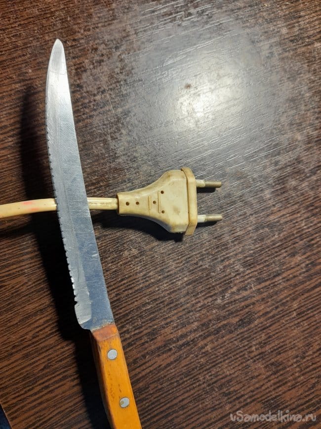Старую негодную сетевую вилку разрезал и выдернул из нее контактные штыри.
