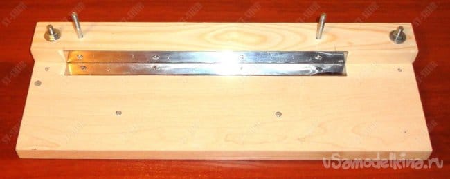 Верхняя и нижняя планки зажима для пластиковой заготовки изготовлены из рейки сечением 20х40мм. Верхняя планка длинной 280мм, нижняя планка длинной 400мм.