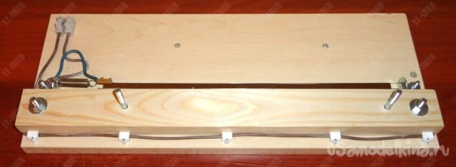Для удобства укладки провода в торцах нижней зажимной планки, с помощью МФИ «Dremel», были проточены пазы. На станине провод фиксируется с помощью обрезанных пластиковых электроустановочных скоб.