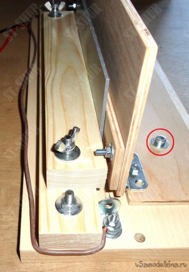 Нагревательный элемент закреплен на станине винтами 4мм. Они же служат контактами.