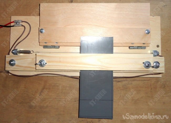 Основание и рычаг соединены с помощью петель, в которых просверлены дополнительные отверстия диаметром 4мм.