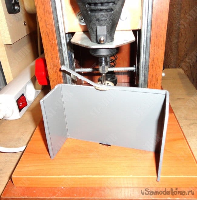 Отражатель вырезан из обрезка уголка из нержавейки толщиной 0,5мм с зеркальной полировкой. Предварительна обрезка была сделана ножницами по металлу, а точная с помощью МФИ «Dremel» установленного на стойке. Отражатель изготовлен размерами 295х20х18х0,5мм