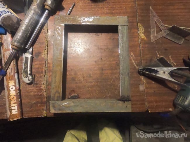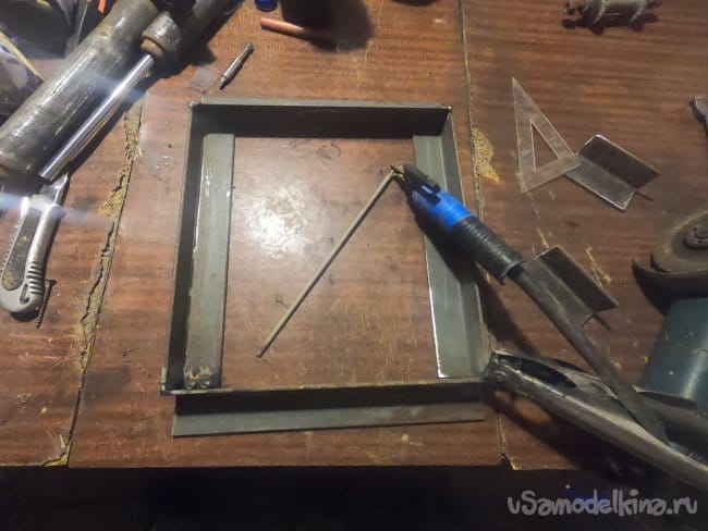 Нарезал уголок и сварил прямоугольное основание. Уголок порезан на отрезки примерно 30 см.
