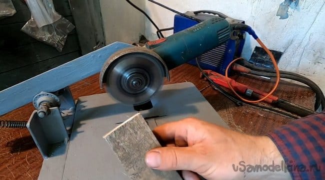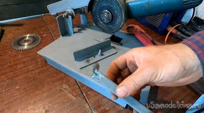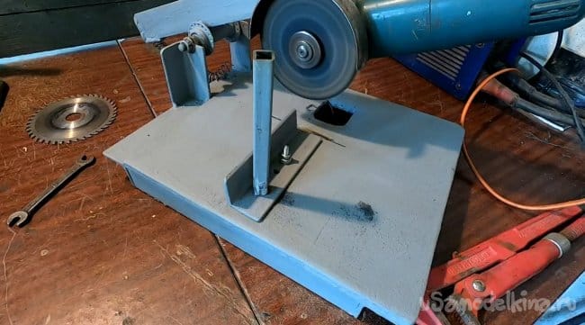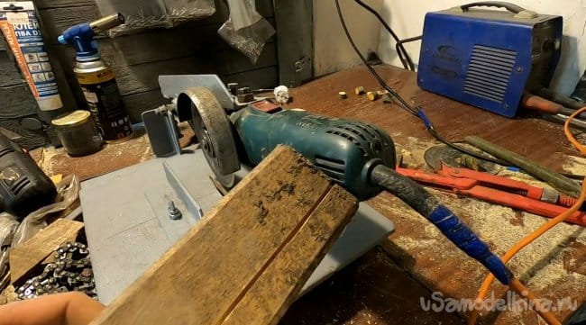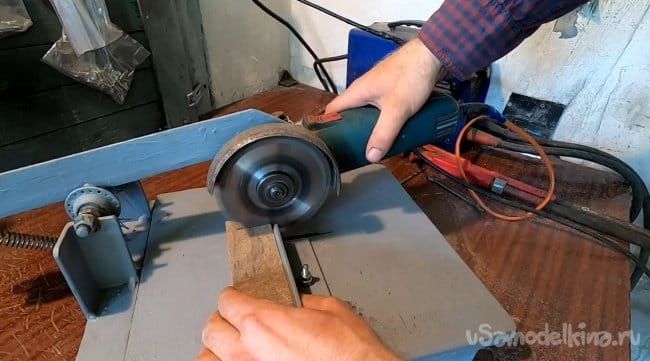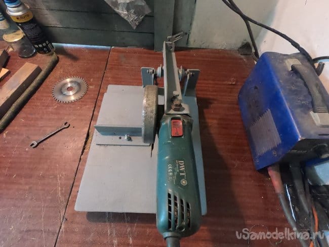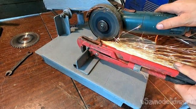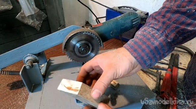 Можно быстро и точно резать трубы под нужный угол, а также брусочки, доски и так далее. Предусмотрел я и блокировку, болгарку можно зафиксировать, что позволяет делать пазы в дереве, или даже делать проточки в металле под самые разные нужды. Собрано все просто из доступного материала. И так, обо всем по порядку!