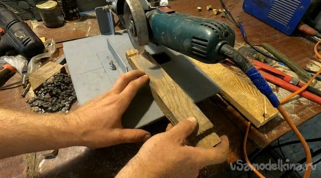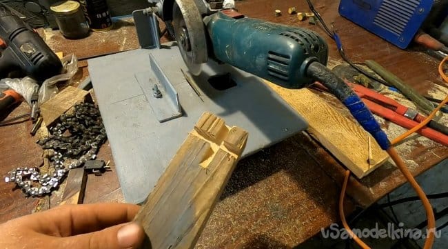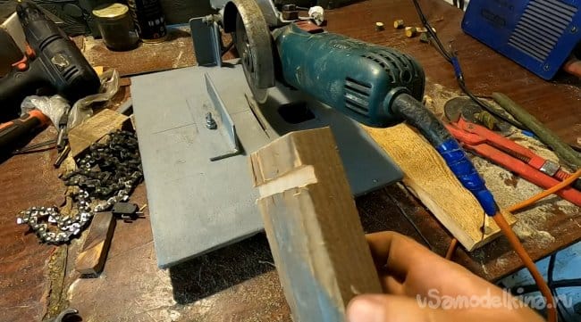 Зафиксировав болгарку, у меня получилось делать пазы в бруске и досках. Само собой, снимать и резать было неудобно, да и упор нужно убрать, ну ли сделать другой в зависимости от потребностей. На этом все, удачи и будьте осторожны!