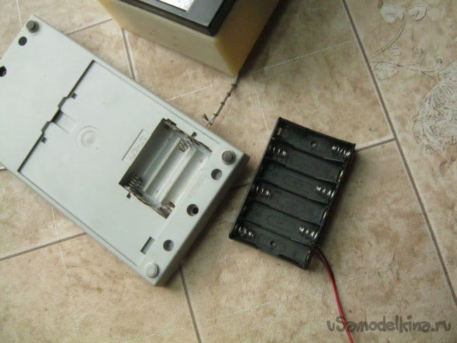 Фото 14. Батарейный отсек прибора подготовленный для вклеивания новой кассеты для 3-х элементов ААА.