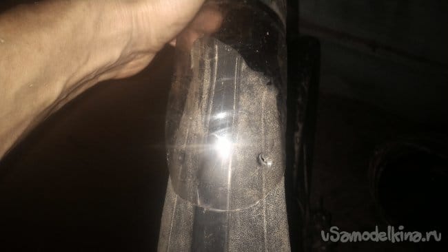 Затем я проделал 2 отверстия в получившейся детали с той стороны, что была у горлышка бутылки.