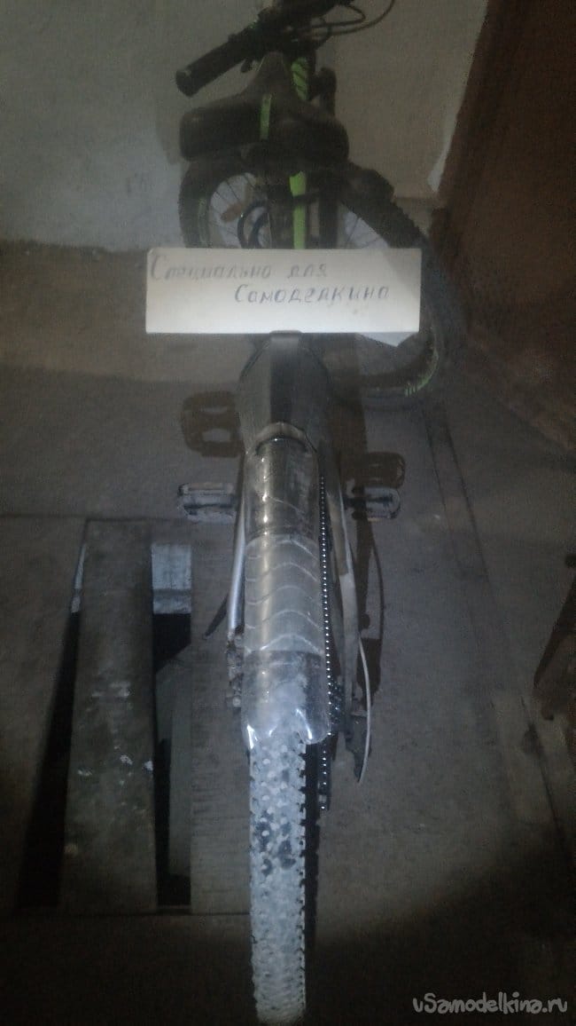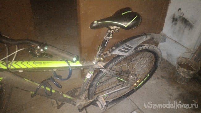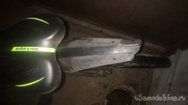 Активно катаясь на велосипеде, я как-то не уследил за задним крылом и оно, опустившись на колесо протерлось, отчего стало заметно короче.