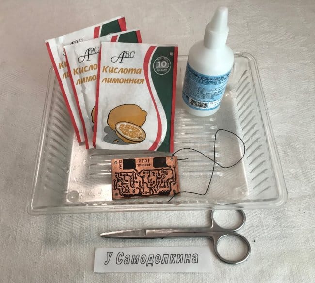 Для травления ПП можно использовать рецепт раствора, найденный в интернете и проверенный на практике.