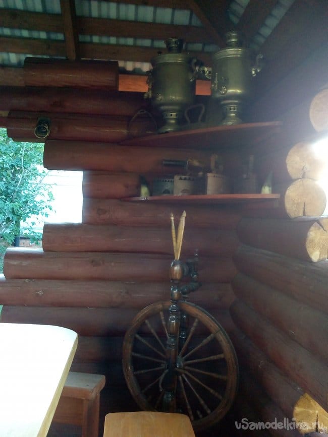 Начнем с того, что, в беседке у меня есть зоны интерьера со «старинными» вещами.