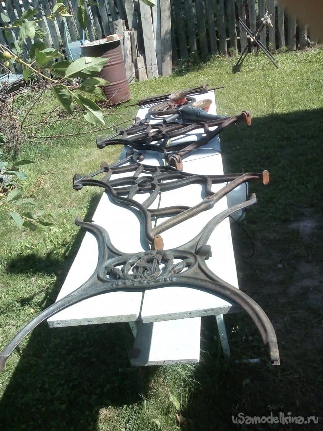 Далее были срезаны старые, не родные станине, мебельные болты, которыми в некоторых местах были скручены чугунные элементы, по казенным отверстиям, и конструкция была разобрана на части.