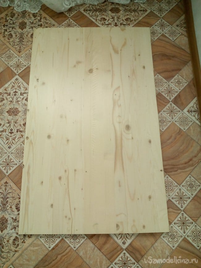 В строительном магазине «Мегастрой», был приобретен щит мебельный, из сосны 18х600х1000 мм. По длине размер щита оказался с запасом, к моим размерам.