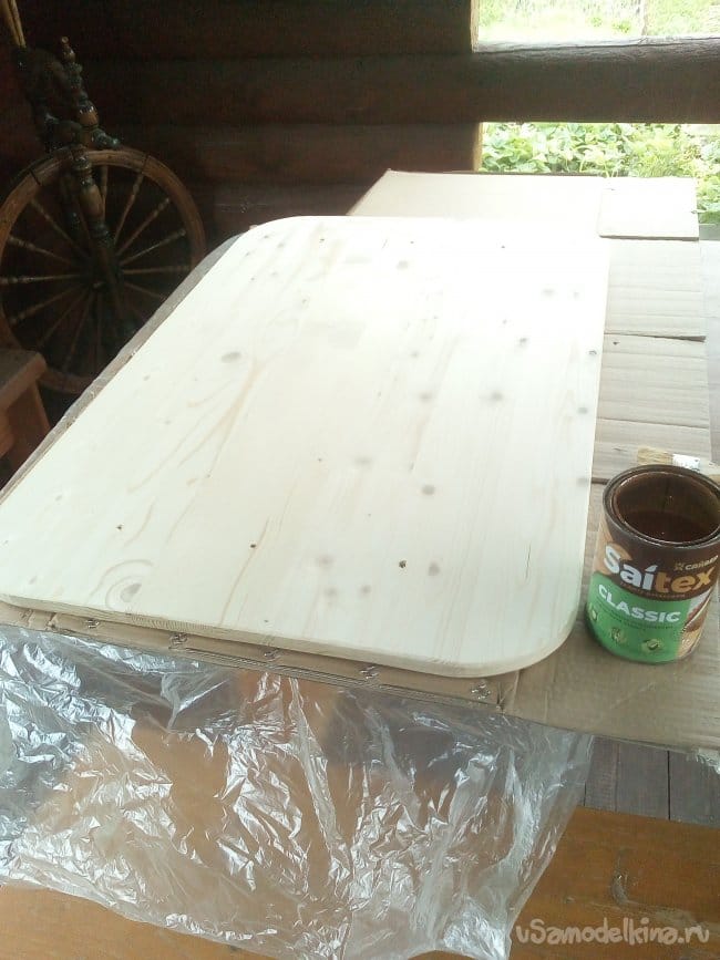 Пропитываем нижнюю часть столешни защитным составом на 2 слоя.