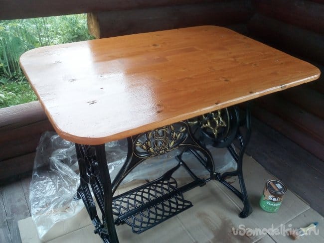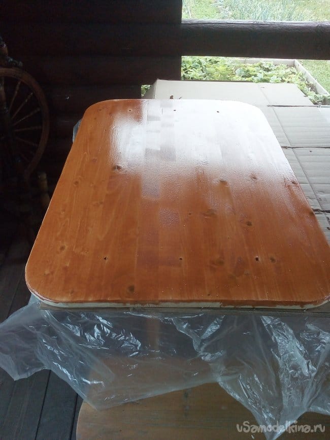 Ставим столик на место, пусть столешня сохнет, садимся напротив, любуемся полученным результатом.