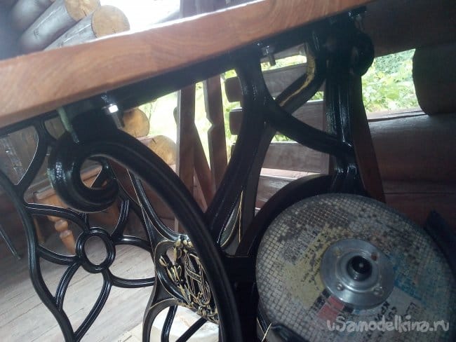 Стоял у меня в углу беседки «Совковский» кухонный стол, поставлен был, потому что выкинуть жалко, а деть, куда - то надо было. Короче надоел он мне. Решил сделать ему замену, на что то оригинальное. Оригинальное, нашлось на просторах «нета» - картинки столов со станинами от швейных машин. Отправился я по антикварным лавкам, посмотреть, что к чему, м-да с ценой там, я был не согласен. Но кто ищет, тот найдет, «Авито» в помощь. Каких только «швеек» не предлагают, вариантов много, цена плавает, но приглянулся мне один вариант, смотрю, машинка производственная, СССРовская вроде, с электроприводом, а станина торчит на фотке «крученая», сборная конструкция из разных поколений и цена устроила меня за все это удовольствие, даже поторговался. Находилось все это «богатство» в поселке за городом. Пришлось съездить в «экспедицию»…