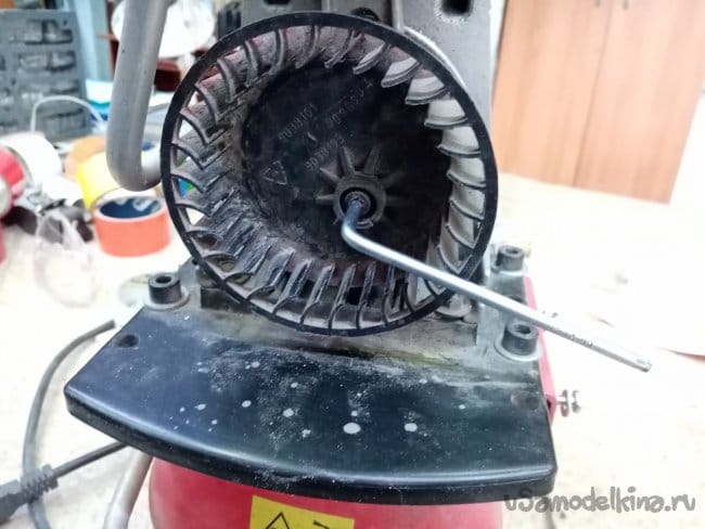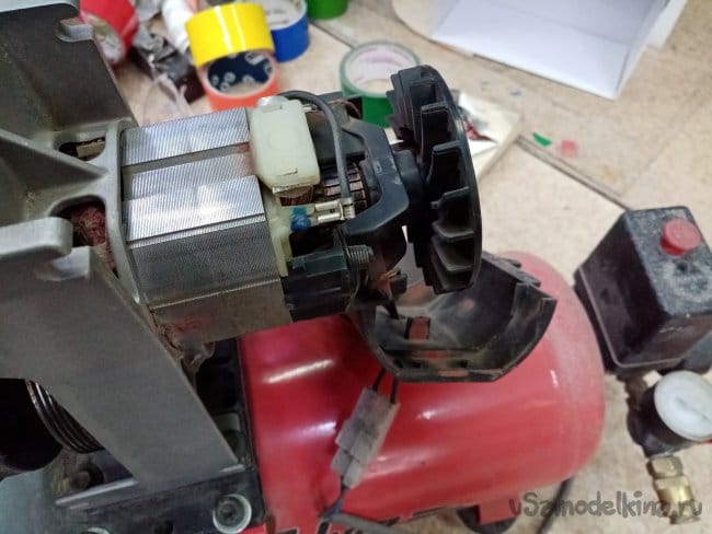 Для начала очистил компрессор от многолетней пыли и остатков краски. Снял чехол ветродуя там тоже много всего интересного скопилось.